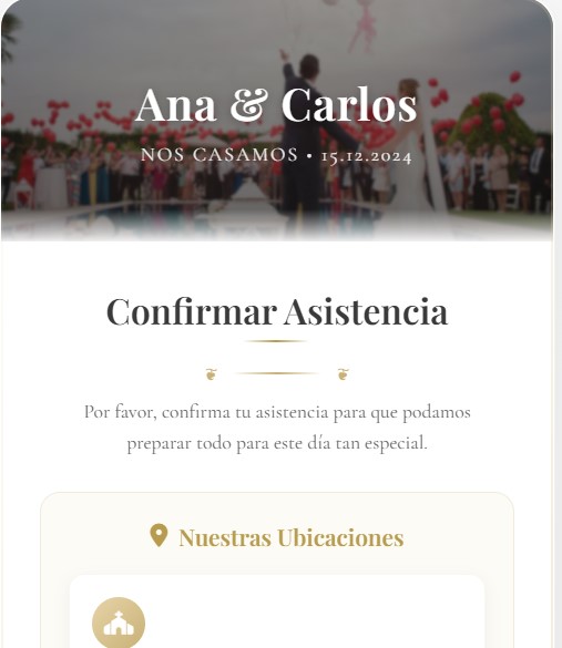 Invitación estática, imagen optimizada para WhatsApp y link directo.